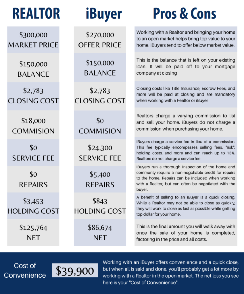 So, that brings us back to the million-dollar question: Is selling your home to an iBuyer worth the cost? It depends on who you ask. The answer comes down to each seller’s situation and what they value more: cash or convenience. Working with an iBuyer offers convenience and a quick close, but when it’s all said and done, you’ll probably get a lot more by working with a REALTOR in the open market.